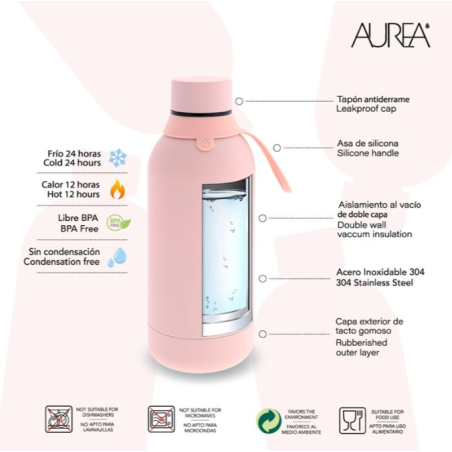 Aurea - BOTELLA ACERO INOXIDABLE 500ML - PEACH WAKE UP AND MAKEUP