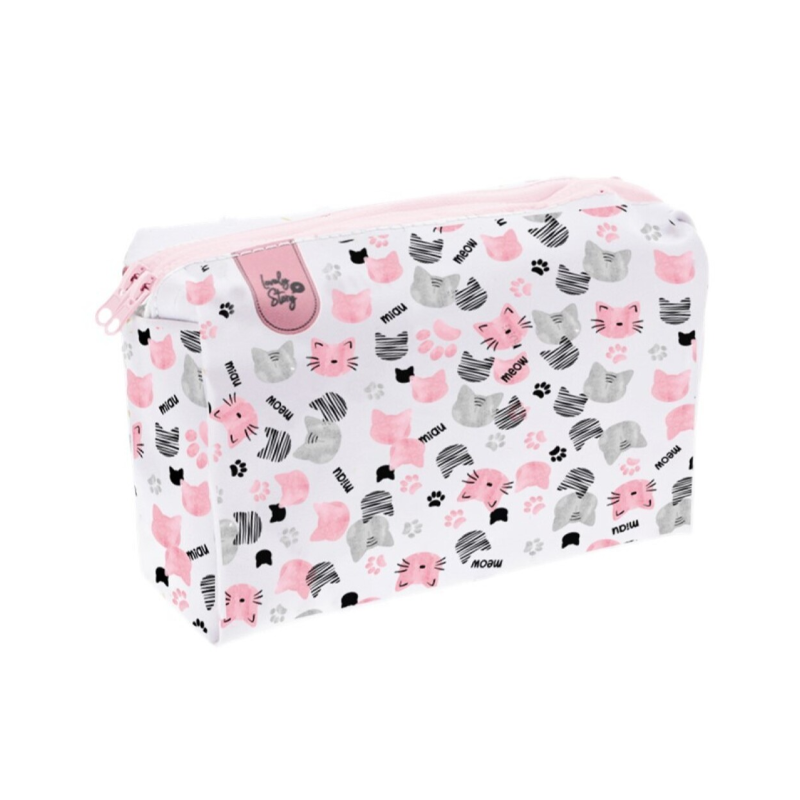 Nuestro neceser de la colección “ice miau” con un estampado de gatitos que te va a encantar, tiene el tamaño ideal para llevar todos tus imprescindibles en el bolso allá donde vayas, sin que se te pierda nada gracias a su cierre con doble cremallera que te permitirá tener dos departamentos separados en un solo neceser, para tenerlo super organizado.