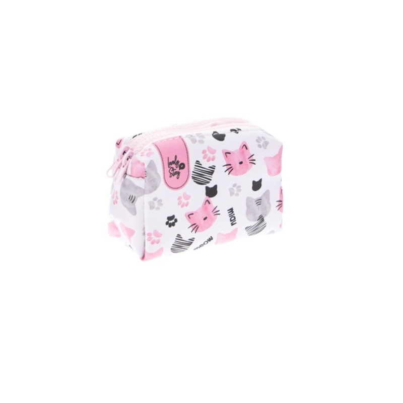 Nuestro monedero de la colección “ice miau” con un estampado de gatitos que te va a encantar, tiene el tamaño ideal, sin que se te pierda nada gracias a su cierre con doble cremallera que te permitirá tener dos departamentos separados en un solo neceser, para tenerlo super organizado.