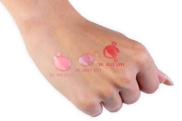 Algunos tonos presentan partículas de brillo diminutas que le confieren un acabado metalizado al gloss, mientras que otros son tonos lisos clásicos.