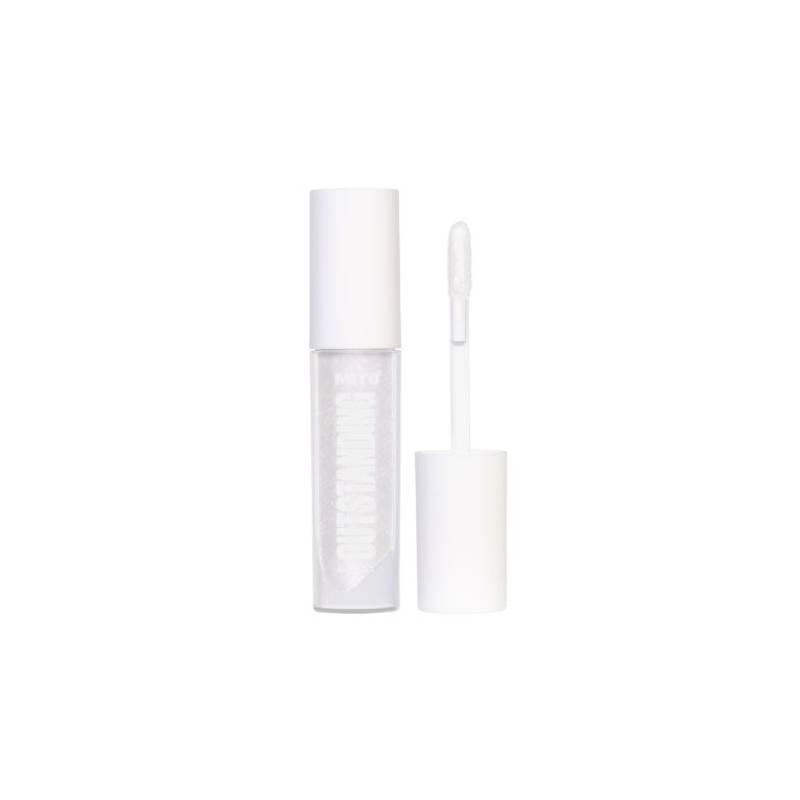 Prepárate para deslumbrar con cada sonrisa. Este brillo labial translúcido está enriquecido con fascinantes partículas multicolor que capturan la luz de la forma más cautivadora
