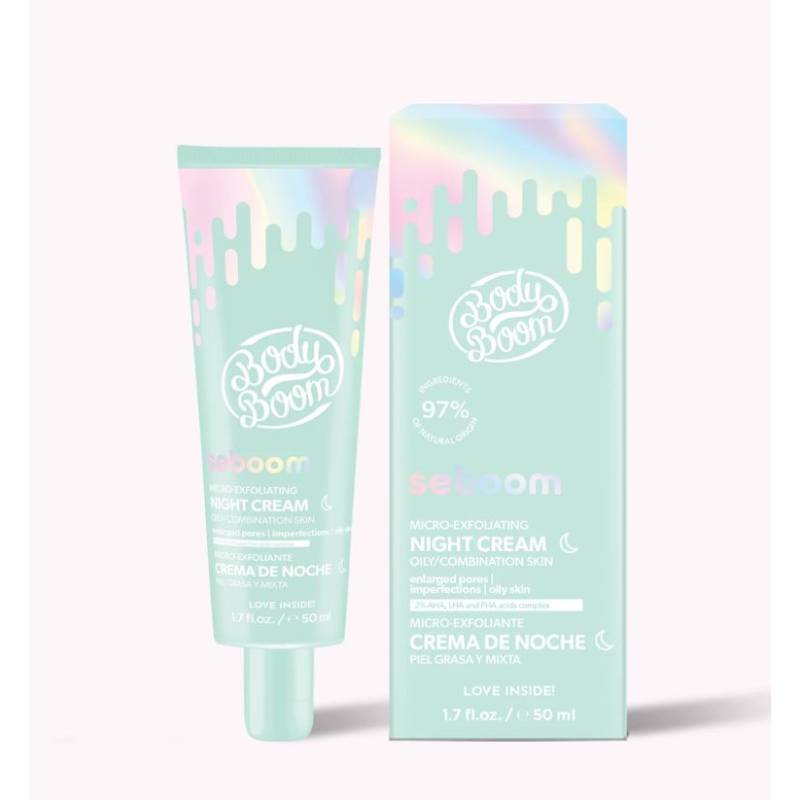 Dale a tu piel un reinicio total con la Crema facial de noche microexfoliante de Bodyboom, tu aliada para una piel suave y luminosa.