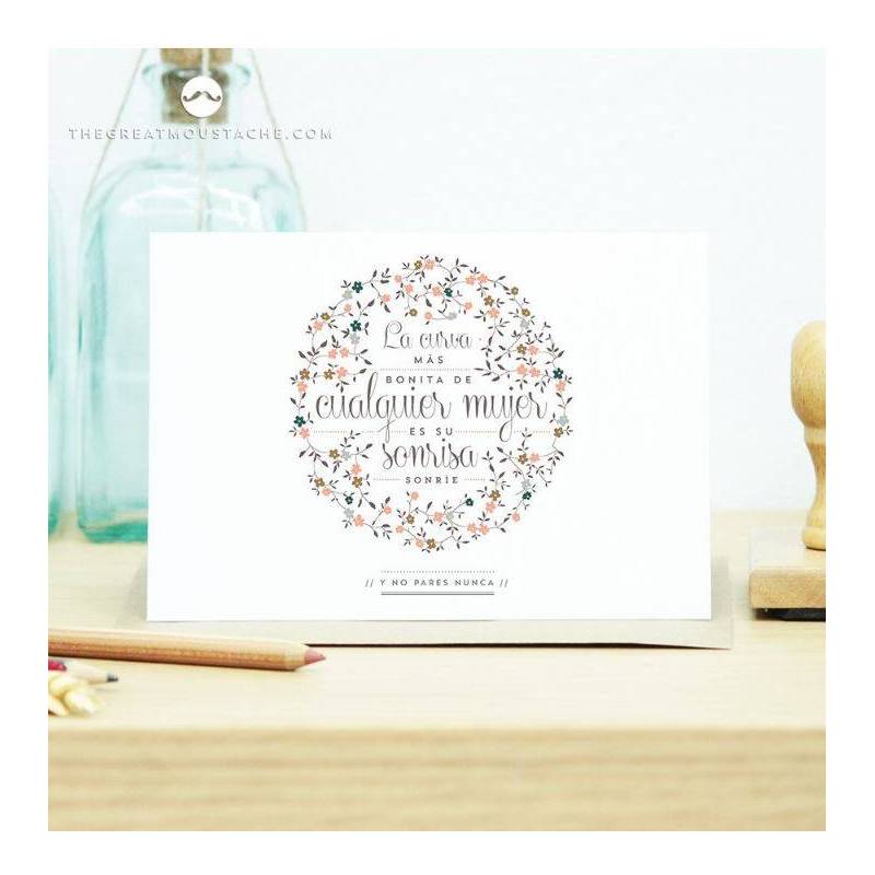 The Great Moustache - TARJETA LA CURVA MÁS BONITA DE CUALQUIER MUJER ES SU SONRISA + SOBRE KRAFT