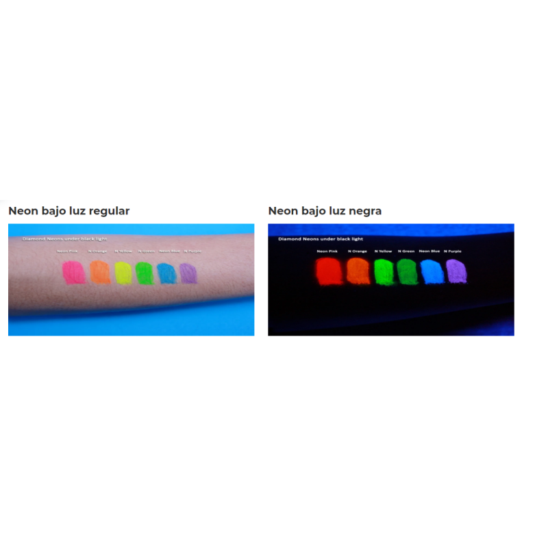 La gama de colores fluorescentes se muestra a la luz del día y te encantará con luz negra u ultravileta.