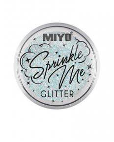 ¡Todo el brillo en tus ojos con la gama glitter! El pigmento Sprinkle Me! Glitter Miyo es un polvo suelto con partículas llenas de luz, que aportan color y brillo con un acabado lleno de destellos. Lo mejor de este producto es que es multiusos, ya que podemos utilizarlo de distintas formas. Su uso principal es como sombra de ojos: en polvo si la utilizamos por sí sola o en crema si la aplicamos con un pincel húmedo, conseguiremos en este caso mucha más concentración de pigmento, un acabado metalizado y mayor duración.