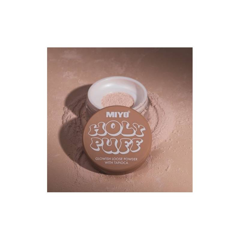 Polvos sueltos con tapioca para un acabado de maquillaje natural y ligero.