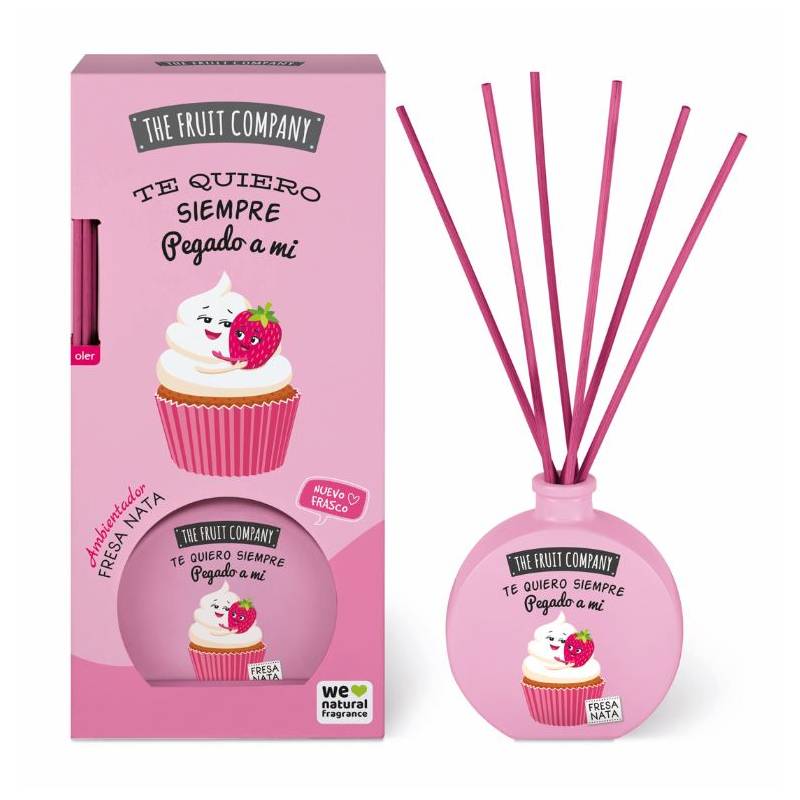 Ambientador de mikado con aroma a Fresa y Nata y extractos naturales. 0% Alcohol.